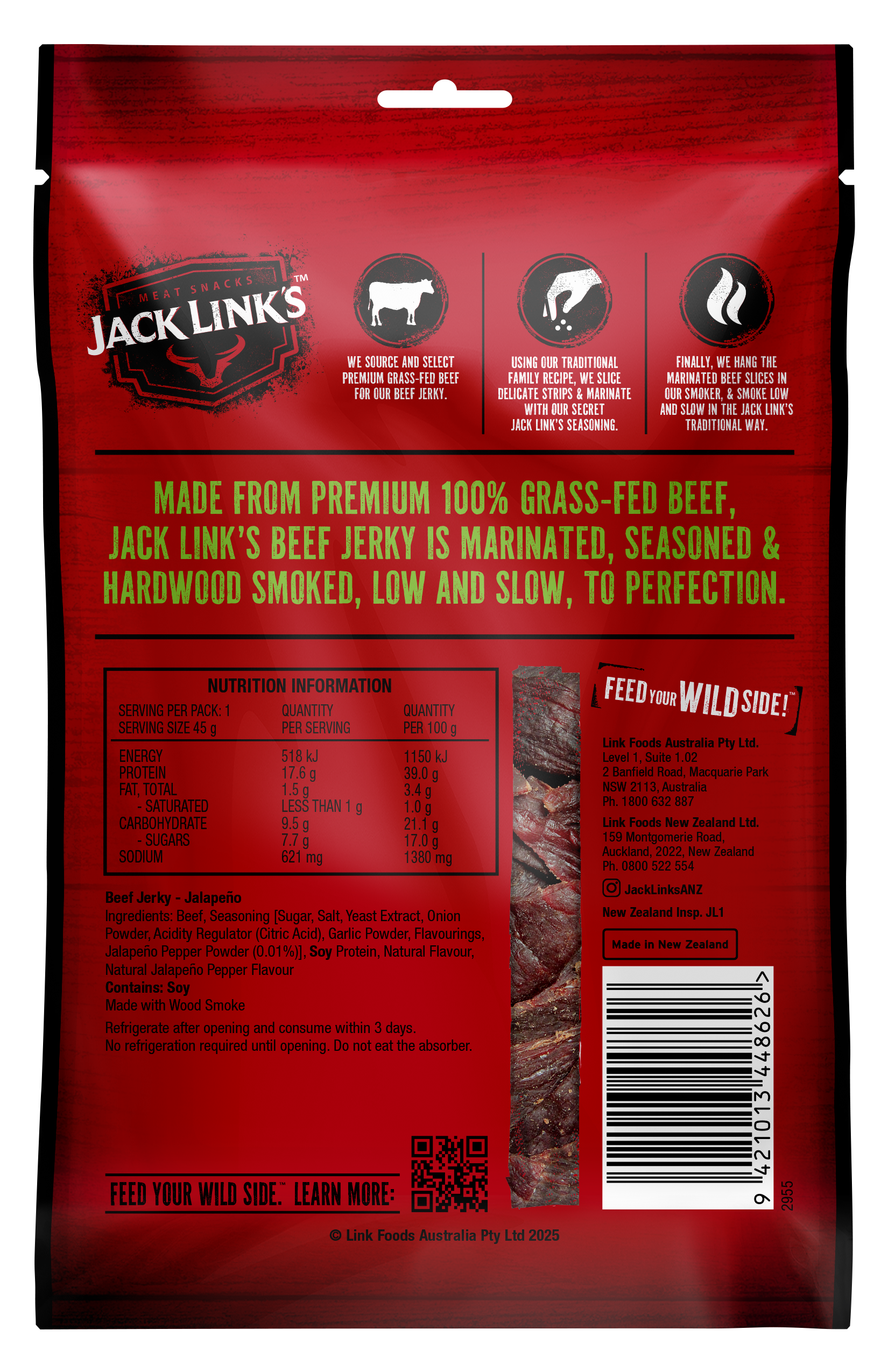 Based on 45g Jalapeño Beef Jerky