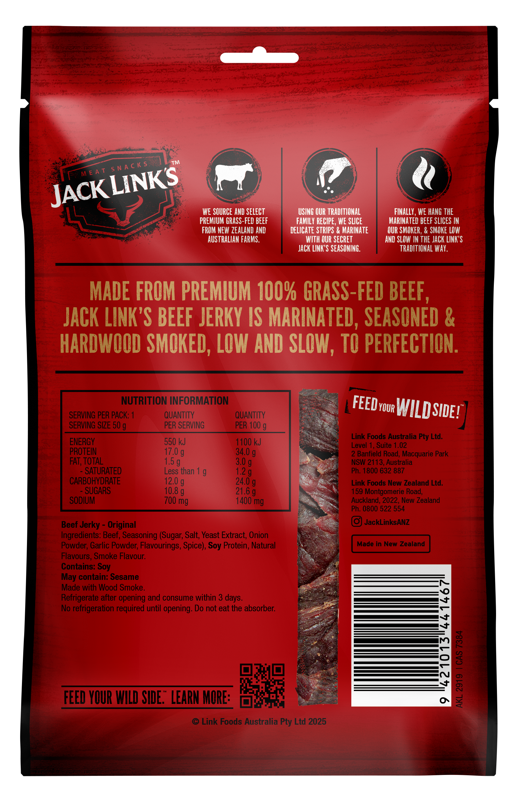 Smoky, rich and unmistakably beefy. This classic jerky is slow-marinated, seasoned, and hardwood smoked to bring out bold, savoury character in every bite. The kind of flavour your ancestors would’ve built a fire for. No nonsense - just real meat, made the traditional Jack Link’s way.
